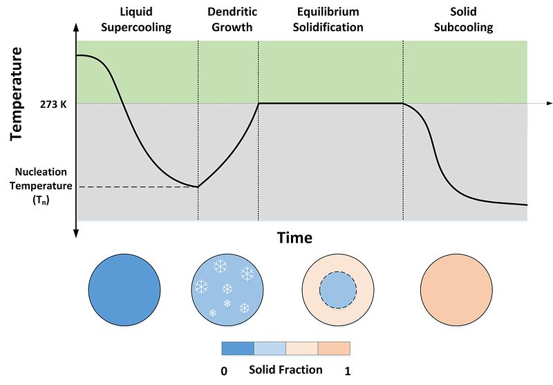 The project broadly aims at developing an open-source, reduced-order modeling framework for solidification in pure materials and binary mixtures, that is able to capture different stages during the freezing process accurately. For pure materials the model is developed for water, whereas an aqueous sucrose solution is used as a case study for binary mixtures. The findings from this project would be of importance to several physicochemical, biological, and engineering applications in pharmaceutical, food, mining, and aerospace industry.